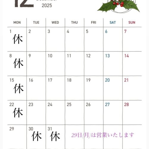 年末年始は12月30日(土)~1月3日(水)まで お休みをいただきます。 クリスマス前~成人式までは予約が混み合いますので 早めの予約をおすすめします☆ …